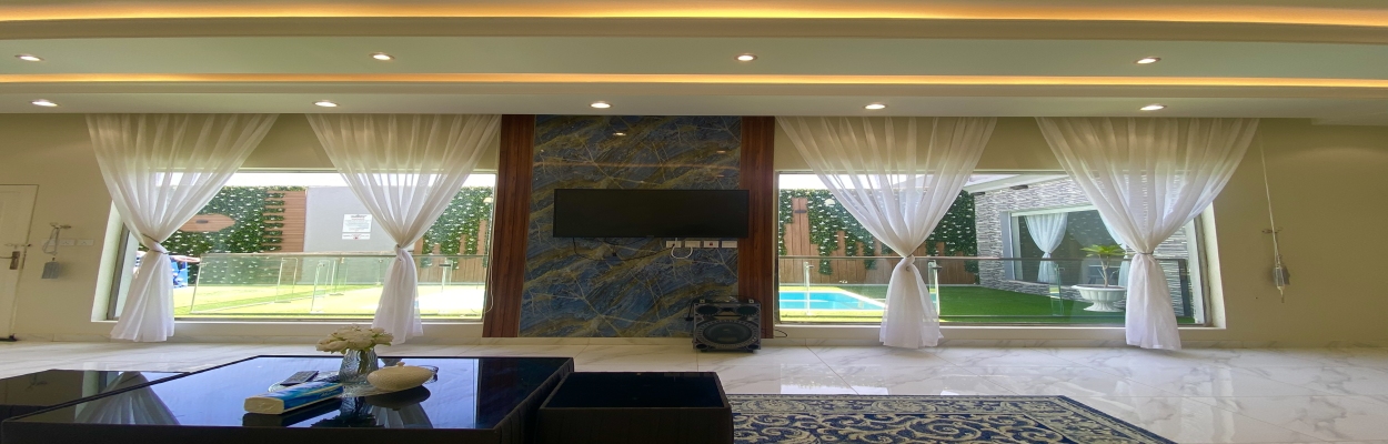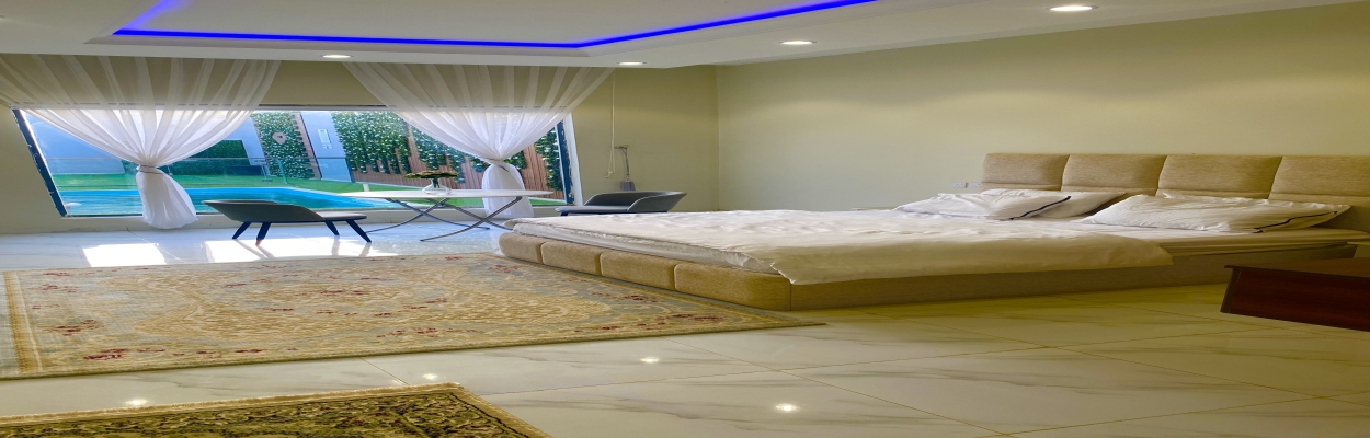 غرفه نوم ماستر مطله على المسبح مع حمام شاور