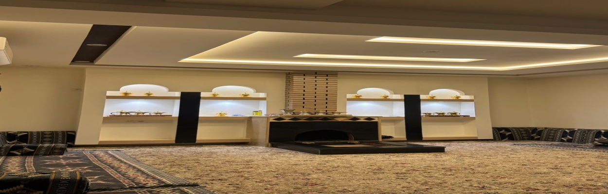 • مجالس ضيافة: بتصاميم عصرية وحديثة، مثالية للمناسبات الكبيرة والصغيرة، مع مكان مخصص لشبة النار 🔥.