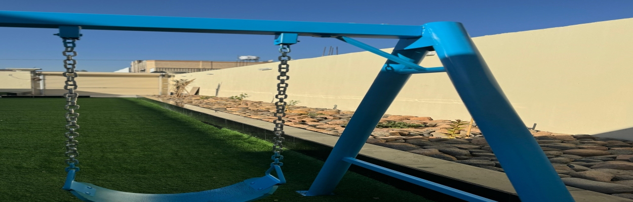 • جلسة خارجية وساحة كبيرة: تطل على المجلس مباشرة مع مسطحات خضراء صناعية وأشجار تضيف جمالًا وراحة للأجواء.