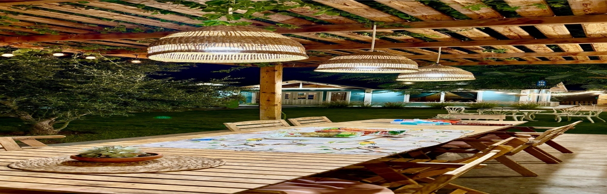 يقع على مساحه ١٦٠٠ م مسطحات خضراء ومسبح خارجي كبير مسور مع جلسه استرخاء، كما يوجد جلسه طعام خارجيه تتسع ل ١٠ اشخاص ومكان مخصص للشواء بالاضافه الى مجلس خارجي كبير بدوره مياه ومساحه خلفيه تحوي طيور
