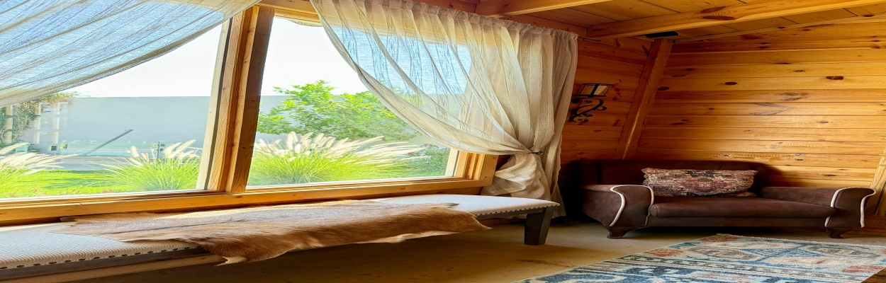 كوخ مكون من غرفه نوم رئيسيه بدوره مياه خاصه +غرفه نوم بسريرين للاطفال +صاله بدوره مياه + مطبخ مجهز بالكامل
