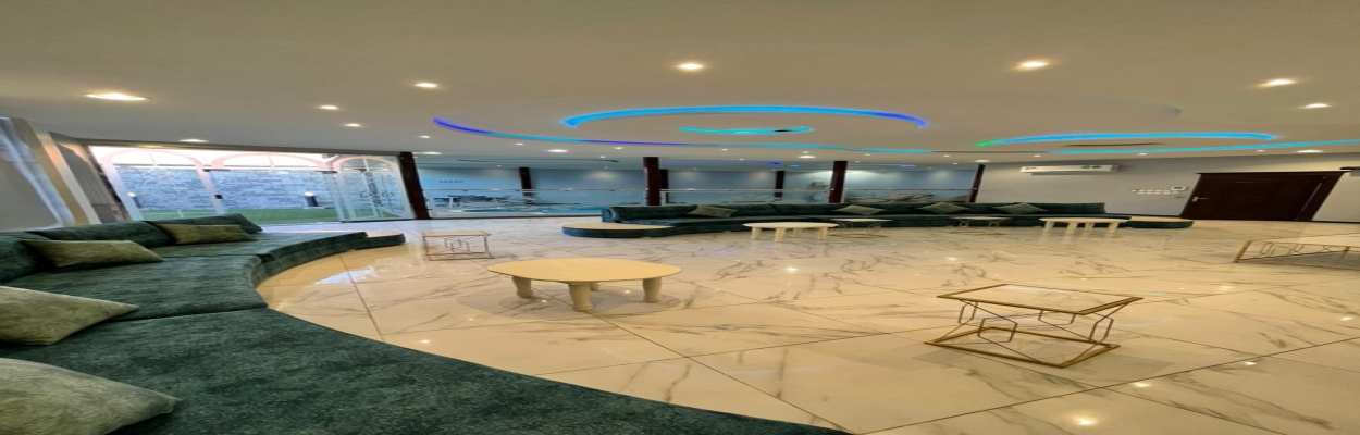 الشاليه يتميز بصاله كبيره تحتوي علي ثلاث مكيف كبير