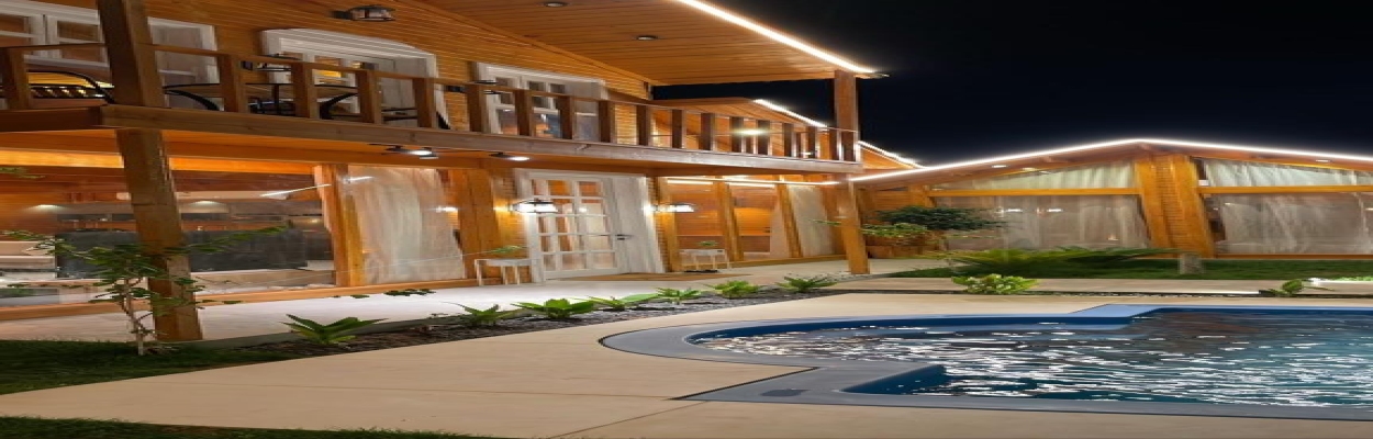 يتكون من دروين . غرفة اطفال ماستر وغرفة نوم مع يلكونه وصاله مع دورة مياه جميعها مطلة على الحوش . يتوفر ثلاث جلسات خارجيه من ضمنها جلسة شواء ومسبح خارجي